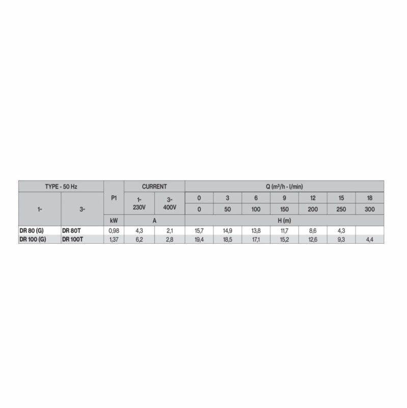 Bomba de drenaje con turbina abierta para bombear líquidos con sólidos en suspensión. Se caracteriza por una alta prevalencia en relación con el tipo y el tamaño de la máquina.