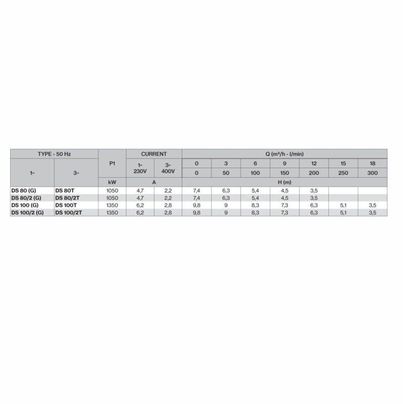 Doble sello mecánico con barrera de aceite: lado de la bomba con sello mecánico de carburo de silicio; lado del motor con anillo de sellado (80-102) o sello mecánico de cerámica-grafito (150)