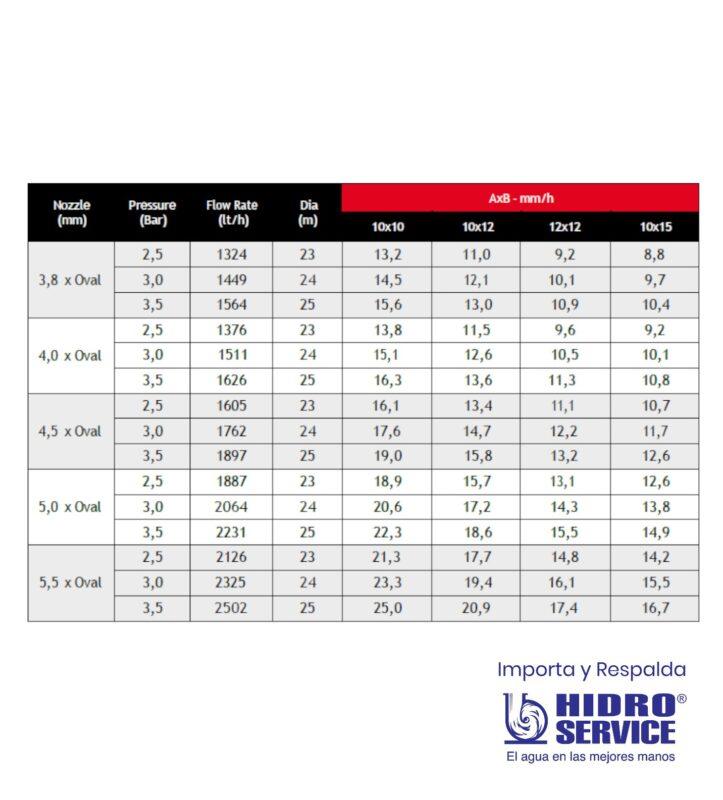 Presión (m.c.a) 8 - 7.0 - 6.5 - 5.4 - 5.0 - 4.5 - 4.0 - 2.0