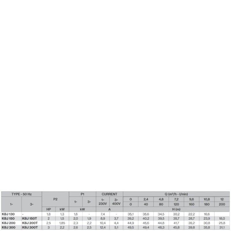Caudal (M3/H) 0 - 3.6 - 4.3 - 6.6 - 7.8 - 8.6 - 9.1 - 11