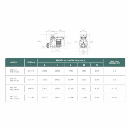 Bomba autodrenante SERIE BAD Vulcano. Diseñada especialmente para sistemas de hidromasajes y spas, dando un óptimo rendimiento de presión-caudal y con la capacidad de auto evacuar toda el agua de su interior.