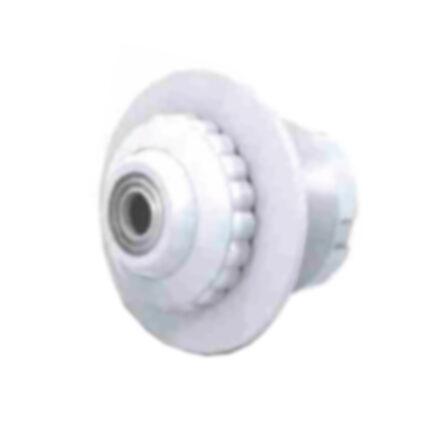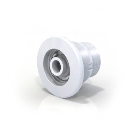 Retorno orientable Vulcano para piscina de hormigón. Posee aro desmontable blanco, cuerpo con rosca hembra de 1 1/2" y boquilla esférica con pico de ø19 mm para ser instalado por debajo del nivel de agua. Diseñado para producir flujo en dirección al skimmer o toma de fondo, y así, favorecer a la limpieza y filtrado de la pileta.