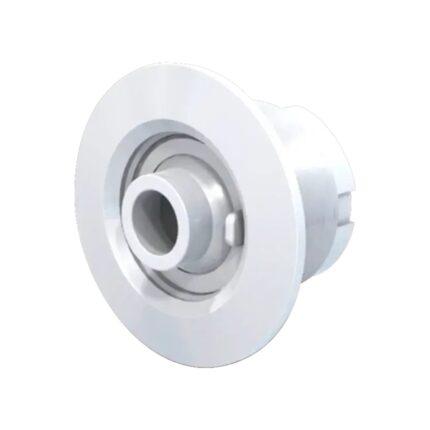 Retorno orientable Vulcano para piscina de hormigón. Posee aro fijo blanco, cuerpo con rosca hembra de 1 1/2" y boquilla esférica con pico de ø19 mm para ser instalado por debajo del nivel de agua. Diseñado para producir flujo en dirección al skimmer o toma de fondo, y así, favorecer a la limpieza y filtrado de la pileta.