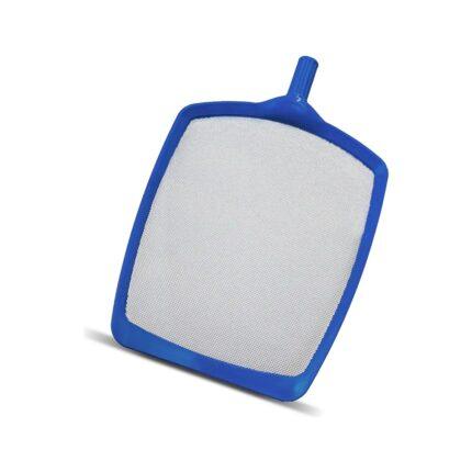 Sacahojas plástico de 410 x 290 mm con mango fijo de aluminio liso de ø19 mm. Posee red con bolsa, pensado para colectar impurezas del fondo de la piscina, cuenta con conector reforzado y canto en forma de pala para hacer más sencilla la recolección.