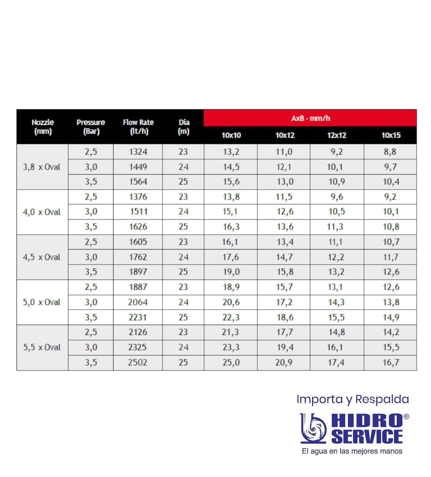 El diseño excepcional del aspersor S17 de STF con boquilla de 4mm, proporciona una distribución homogénea del agua hasta un radio de 13 m y alta Resistencia al viento en riego de círculo completo.