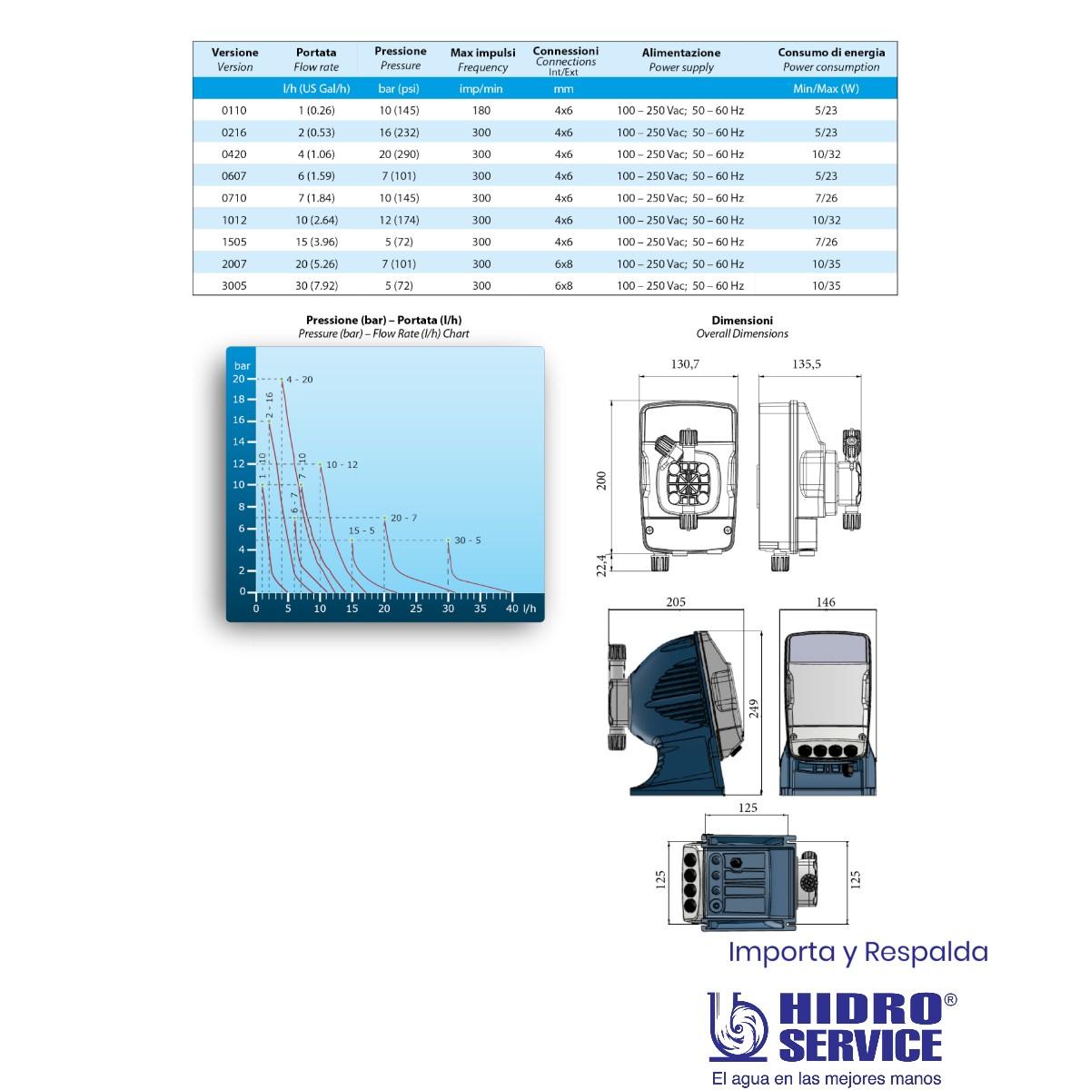 Cuenta con alimentación multitensión de 100 a 250 Vac (50/60 Hz) y se suministra en gabinete apto para montaje en pared o base, ideal para aplicaciones en tratamiento de agua, procesos industriales y dosificación química de alta exigencia.