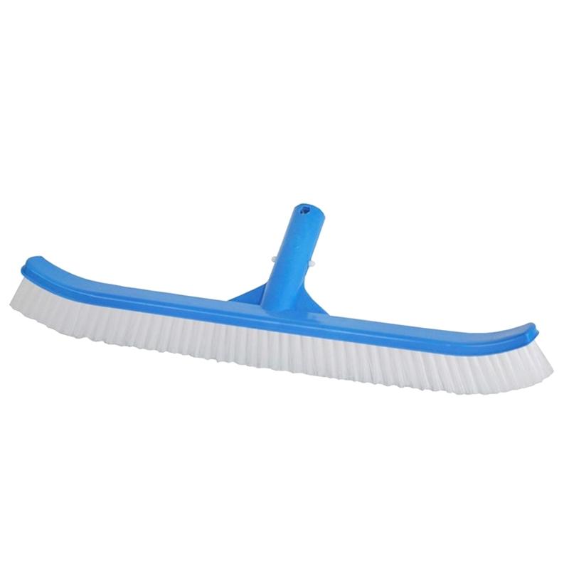 Cepillo curvo Vulcano. Cuerpo plástico de 46 cm de largo y 4 hileras de cerdas de polipropileno; utilizado para limpieza de paredes en piscinas pintadas y revestidas.