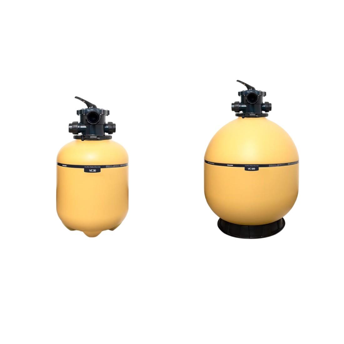 Filtro soplado VC-200 Vulcano de ø780 mm para piscinas de hasta 180 m³. Posee multiválvula selectora de 6 vías para las funciones de filtrado, retrolavado, desagote, enjuague, centrifugado y cierre. Fabricado en una sola pieza con materiales de alta resistencia a la corrosión, este equipo, garantiza larga vida útil con óptimo funcionamiento.