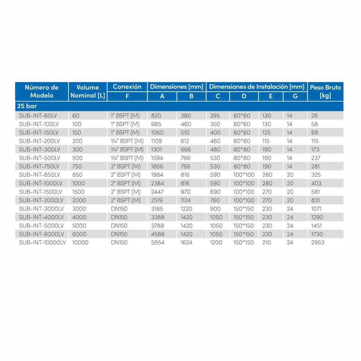 - De 60 a 10000 litros